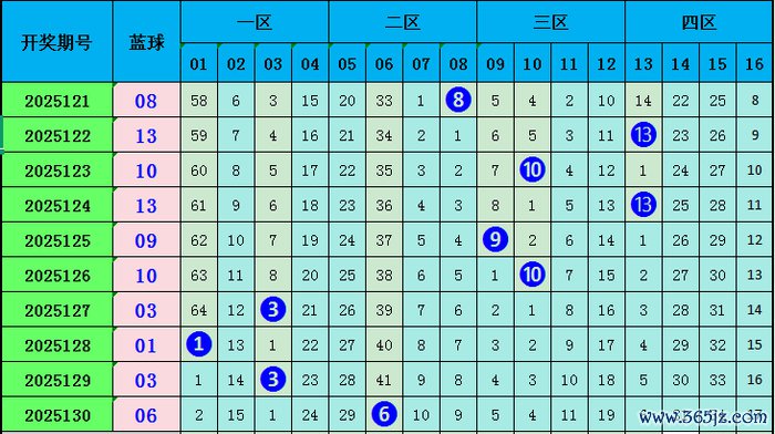 蓝球:前10期蓝球区分为: 08 13 10 13 09 10 03 01 03 06,其中奇偶蓝球奇数球胜出,本期看好偶数蓝球,参考蓝球10.